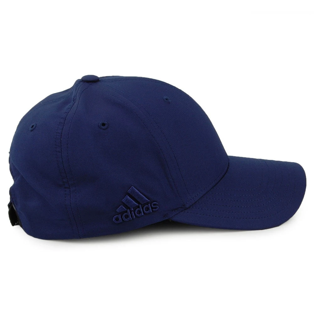 The Adidas Performance Blank Baseball Cap in navy blue is a lightweight hat suited for outdoor activity. This cap provides you with UV protection and a moisture wicking sweatband for comfort. The Adidas logo is embroidered on the wearers right side and there is an adjustable hook-and-loop strap at the back.