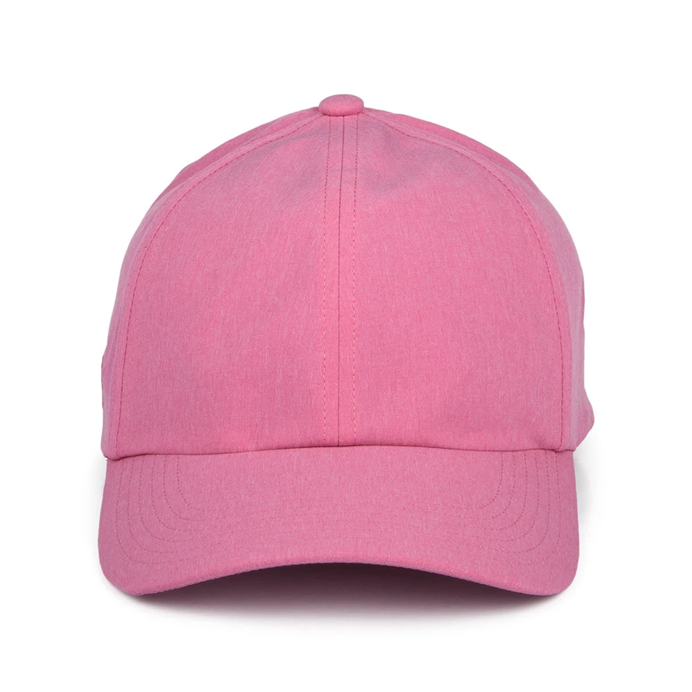 The Adidas Womens Crest Baseball Cap in fuchsia is partially made from recycled materials. This lightweight baseball cap features the Adidas logo on the right side and an Adidas Golf flip tag at the back. The visor is curved and there is an adjustable strap at the back which allows most sizes to fit comfortably.