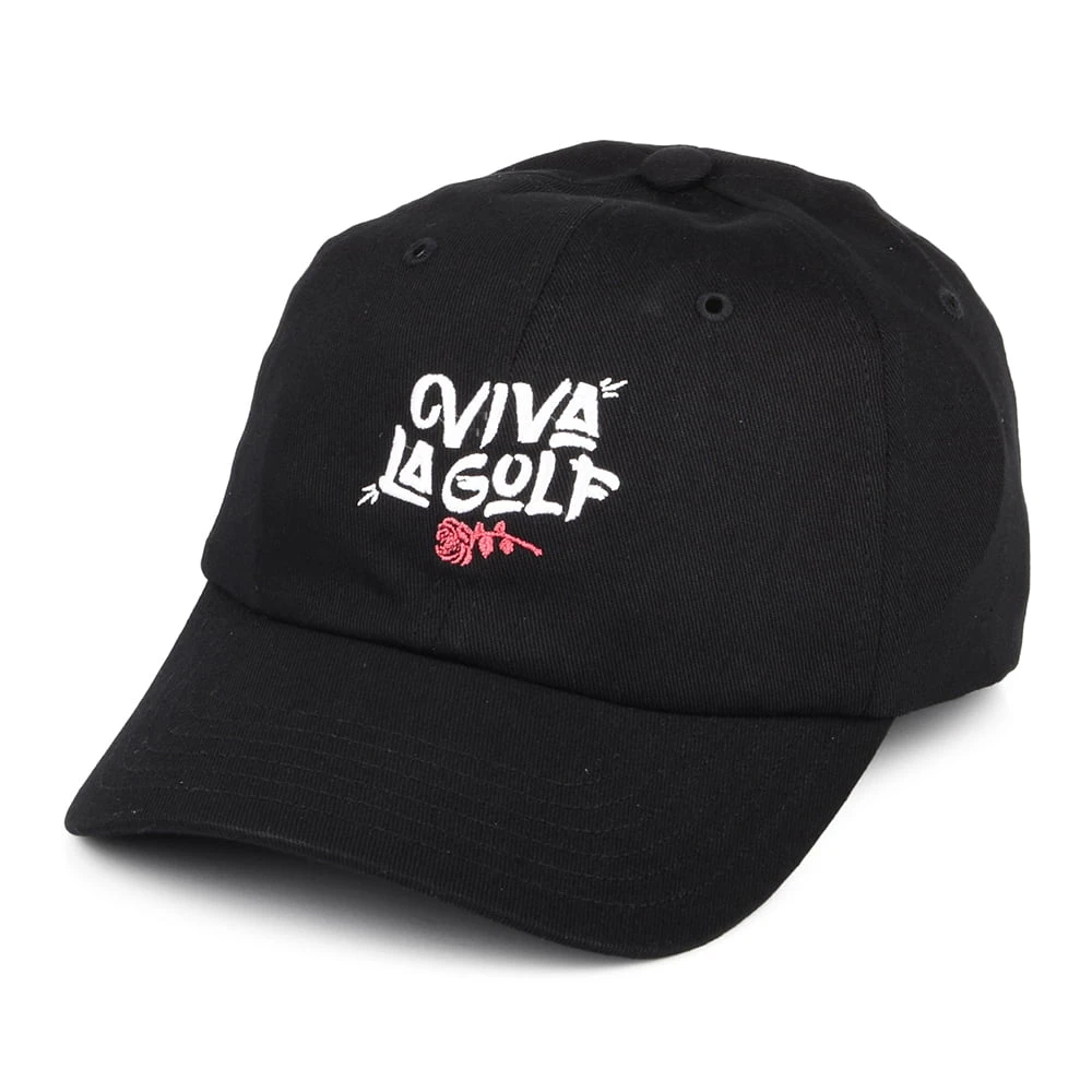 This is the Adidas Women’s Novelty Cotton Baseball Cap in black. This cap features a cool Viva la Golf logo embroidered on the front embroidered on the front. The visor is curved and there is an adjustable strap at the back with Adidas featured next to it.