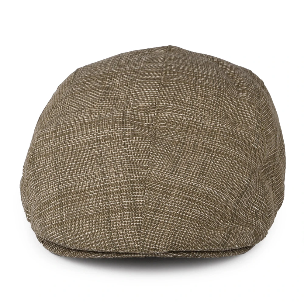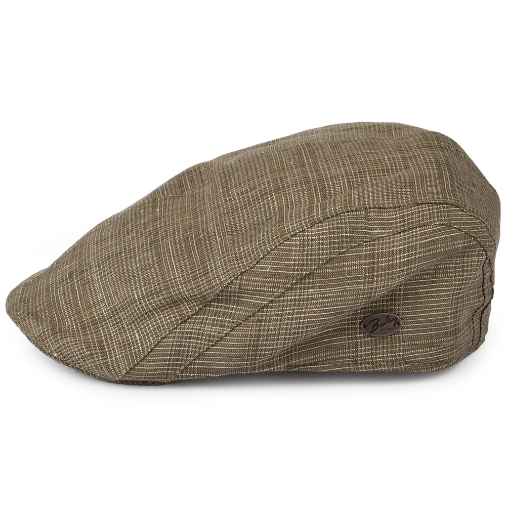 The Bailey Burney Flat Cap in brown is fully lined and features a sweatband inside which makes it very comfortable to wear. A metal Bailey badge is affixed to the side of the striped crown and the brim is sewn down to crown.