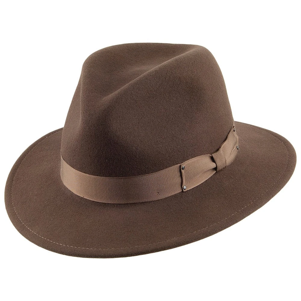 The Bailey Curtis Fedora hat in serpent is a classically designed safari fedora that repels water and oil based spills. It is breathable, durable and can be packed for ease of travel. The hat has a 6.5cm turn down brim and 11.5cm high crown. It also features a grosgrain band with the Bailey name printed towards the back of the bow.
