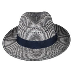 The Bailey Eli Fedora Hat in navy-cream features a unique two-tone braided construction with a grosgrain hatband finished with a contrasting accent and a Bailey badge on the side. Unlined, the hat comes with a cotton sweatband for additional comfort.
