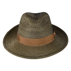 The Bailey Eli Fedora Hat in tan features a unique two-tone braided construction with a grosgrain hatband finished with a contrasting accent and a Bailey badge on the side. Unlined, the hat comes with a cotton sweatband for additional comfort.