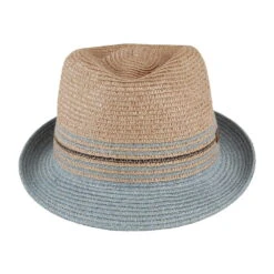 Here is the Bailey Hats Hooper Toyo Trilby Hat in natural. The crown has a little Bailey logo attached to the side. There is a sweatband inside the hat for extra comfort. The perfect hat for a day at the beach or exploring the city in the summer!