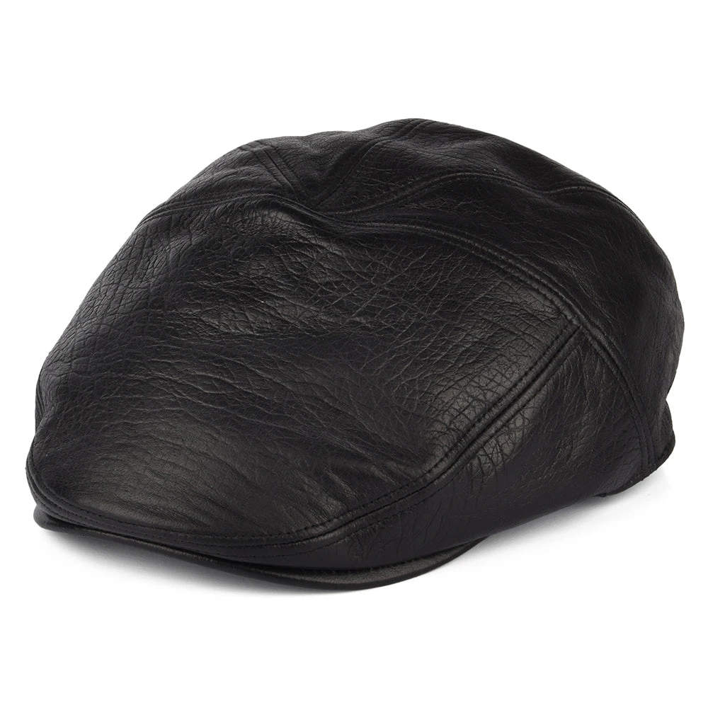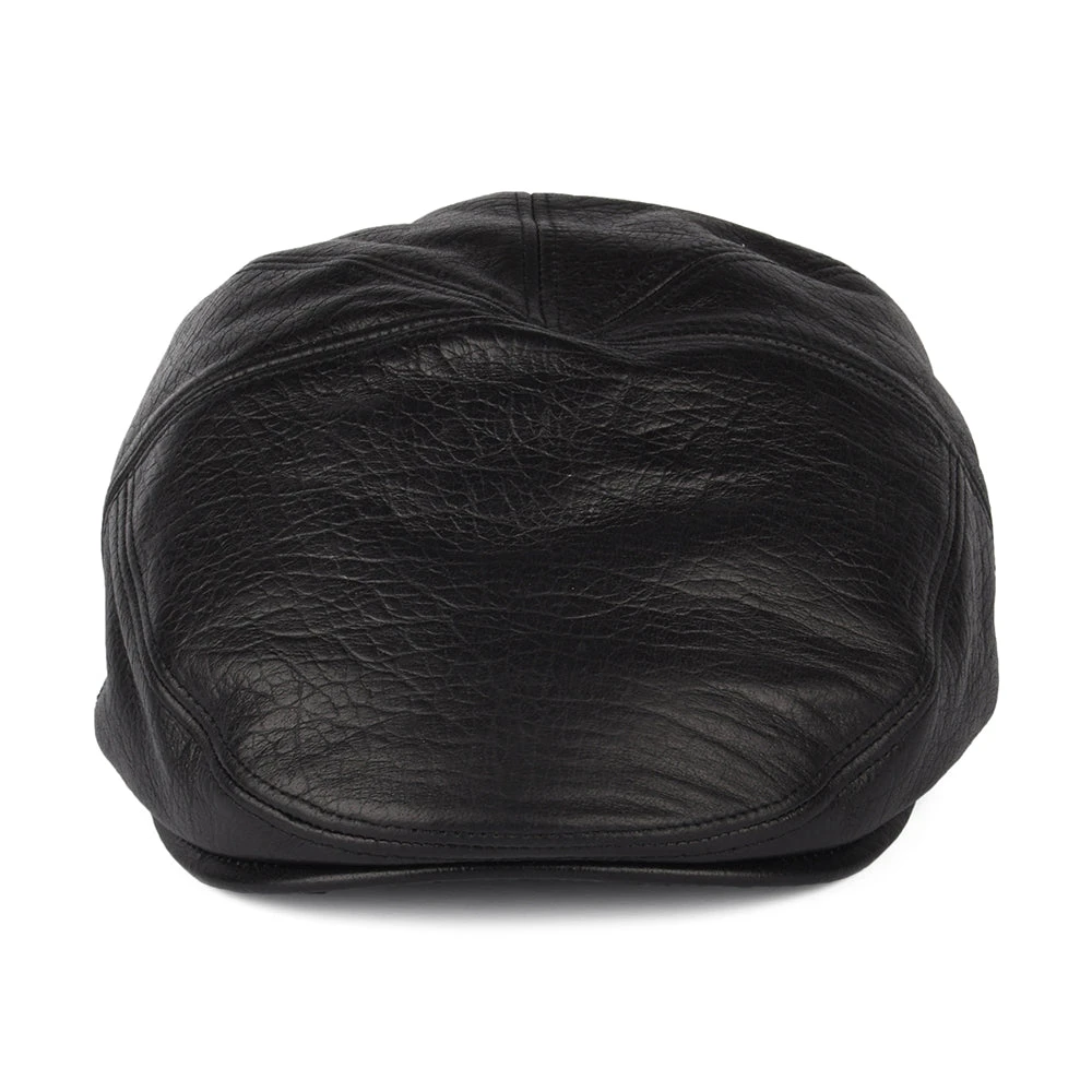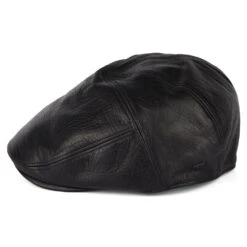 The Bailey Refell flat cap in black is a handsome leather hat that feels very soft. The cap is composed of seven panels and the front is sewn down to the brim. The inside of the cap features a lining and a soft sweatband which makes it very comfortable to wear. A discreet metal Bailey badge can be found on the side of the cap.