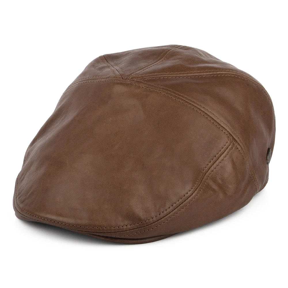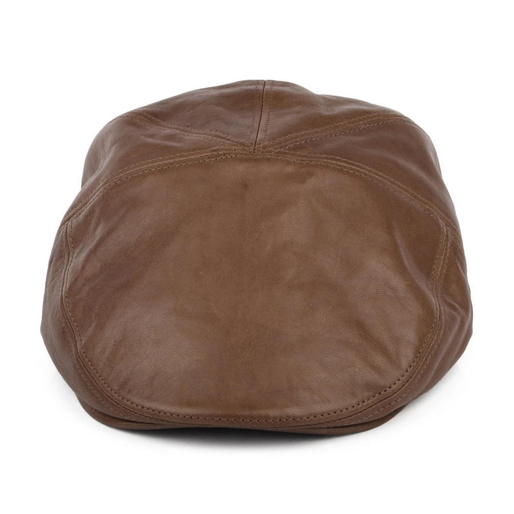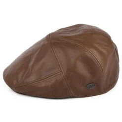 The Bailey Refell flat cap in brown is a handsome leather hat that feels very soft. The cap is composed of seven panels and the front is sewn down to the brim. The inside of the cap features a lining and a soft sweatband which makes it very comfortable to wear. A discreet metal Bailey badge can be found on the side of the cap.