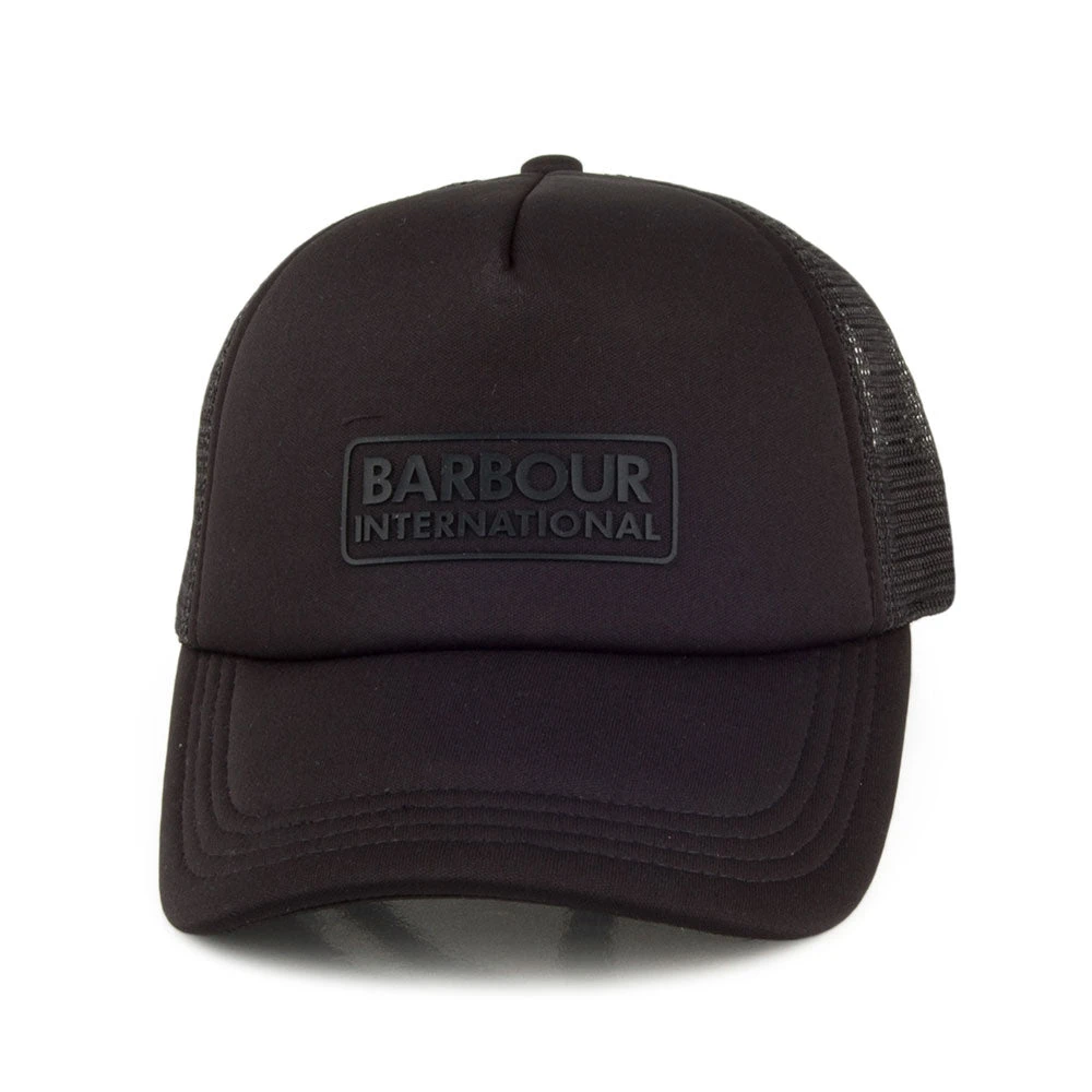 Here is the Barbour International Heli Trucker Cap in black. Featuring a mesh back and padded front crown, this trucker is comfortable and breathable. It is finished with a pre-curved brim, a Barbour International rubber logo on the front and adjustable snapback for easy sizing.