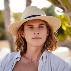 The Barts Aveloz Toyo Straw Fedora Hat in natural is a classic and smart looking hat. The hat is unlined and has a sweatband with a hidden, adjustable hook-and-loop strap for a comfortable fit. The hat is very versatile and can be worn to complement different style of outfits and blends well with a range of different colours.