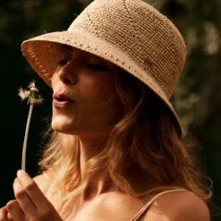 The Tikia is a great new cloche hat in natural from Barts. The hat is made of a sturdy premium raffia straw that has a lovely pattern woven into the crown and brim. There is a Barts badge sewn on the side of the hat and it comes unlined for a comfortable fit during the warm months of the year.