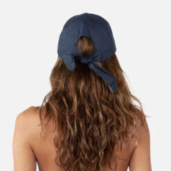 The Barts Hats Wupper Cotton Sun Cap in navy blue is made of 100% cotton. This baseball cap has a beautiful bow at the back so it fits most sizes. The cotton lining and underbrim of this hat have a unique print. The unstructured cap has a pre-curved brim and a Barts label sewn on the side.