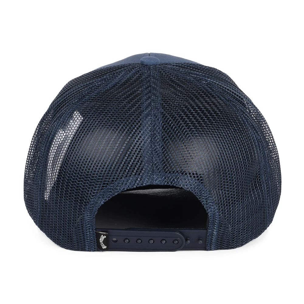 The Billabong Hats Walled Trucker Cap in dark blue features a Billabong patch sewn on the structured front panels. A Billabong flip tag can be found next to the adjustable snap at the back. The mesh back panels ensure comfort and breathability.