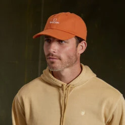 The Brixton Hats Alpha LP Baseball Cap in washed orange is made of 100% cotton. This low profile baseball cap has the Brixton logo embroidered on the front of its unstructured crown. An adjustable strap at the back ensures a comfortable fit.