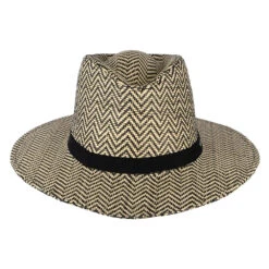 The Carolina Straw Packable Fedora Hat in black-natural is made of 100% paper straw. This packable summer hat is unlined for additional breathability. The cotton sweatband comes with an adjustable hook and loop strap for a perfect fit. The grosgrain hat band is finished with a Brixton badge sewn on the side.