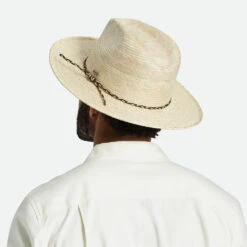 The Messer has lived many lives, and it is now heading sun-side. Featuring the slightly larger brim of the Messer Western, this incarnation sees the ageless fedora in Tripilla straw. It is fully rigid and offers a UPF 50+ sun protection. Unlined, the hat comes with and adjustable hook-and-loop sweatband for a perfect fit. The hat is finished with a braided hat band and a Brixton side pin.