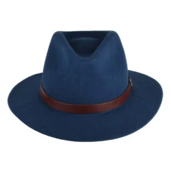 The Messer Fedora Hat in blue is a classic down brim fedora from Brixton. Made of 100% wool felt this hat has a 6cm wide brim and 11.5cm high teardrop crown. This great looking hat is finished with a faux leather hat band with the Brixton pin on the side. The cotton sweatband comes with an adjustable hook and loop strap for a perfect fit. The wool used to make this hat is cruelty free certified by the RWS, a voluntary standard that addresses the welfare of sheep and the land on which they graze.