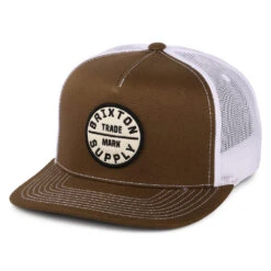 Brixton took one of its most famous snapback styles, the Oath III and made it into a trucker! Just like the snapback, the Oath trucker in brown-white features a structured cotton front finished with a Brixton patch sewn on and a flat brim. The back is made of a breathable mesh and comes with an adjustable snap for a perfect fit.
