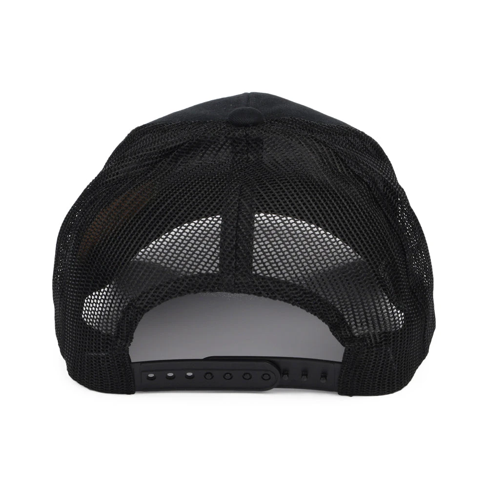 Here is the Brixton Hats Truss X MP Trucker Cap in black. The Brixton Crossover collection blends function, sustainability and classic Brixton styling. The structured front panels are made of cotton while the mesh back is made of polyester. The brim of the cap is made of Bureo’s 100% recycled fish nets and the sweatband is moisture wicking. There is a Brixton patch sewn on the front of the cap while an adjustable snap at the back ensures a comfortable fit.