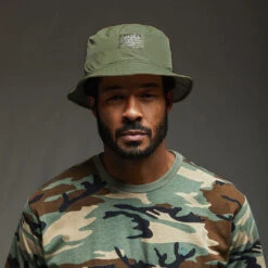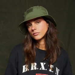 The Brixton Vintage Bucket Hat in olive is a packable bucket hat made of lightweight nylon. This hat has a Brixton patch sewn on the front and a 5cm wide brim. A great everyday hat that you will love to take on all your adventures.