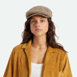 The Hooligan Houndstooth Flat Cap in sand-navy is a new take on Brixton’s famous shape. This flat cap is made of 100% polyester. The cap is satin lined and comes with a cotton sweatband and a Brixton pin on the back towards the side. It will be the perfect accessory all year long.
