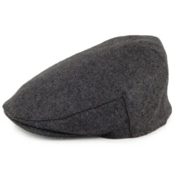 The Christys Balmoral melton wool flat cap in grey is a classic five point cap made from the finest wool. The front of the crown has been sewn down to the brim. The inside of the hat features a satin lining and a grosgrain sweatband for comfort.