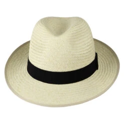 The Bexley Panama Fedora Hat in semi-bleached from Christys’ has been hand woven in Ecuador and then blocked by the master craftsmen at Christys’ hats in England. Made from 100% toquilla straw, the hat is relatively stiff with the brim pre-snapped down, and it comes with a black grosgrain hat band. There is a grosgrain edging on the brim to finish off the amazing look of the hat and there is a soft comfortable sweatband on the inside to ensure a wonderful fit.