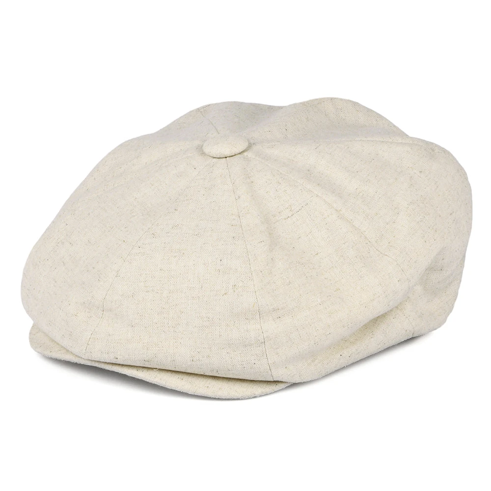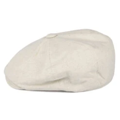 This 8 Piece Newsboy Cap in oatmeal from Christys is a great cap made of a cotton-linen blend, and therefore ideal for the warmer summer months. In the inside is a cotton lining and a grosgrain sweatband for additional comfort. The brim is sewn down.