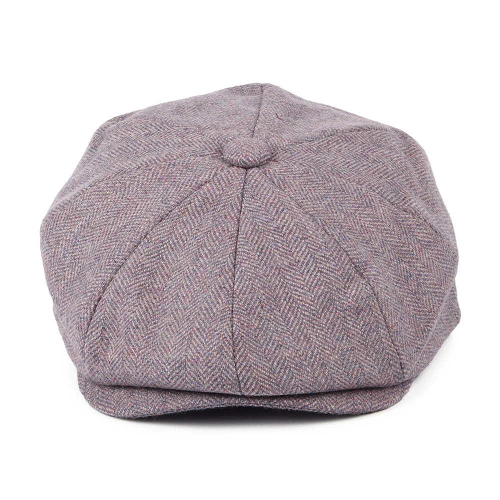 The Christys’ Lovat Teviot Tweed Flat Cap in light purple is made in England from 100% wool tweed from Lovat of Scotland. Inside are a satin lining and grosgrain sweatband for comfort. The crown sewn down to the brim for a sleek look.