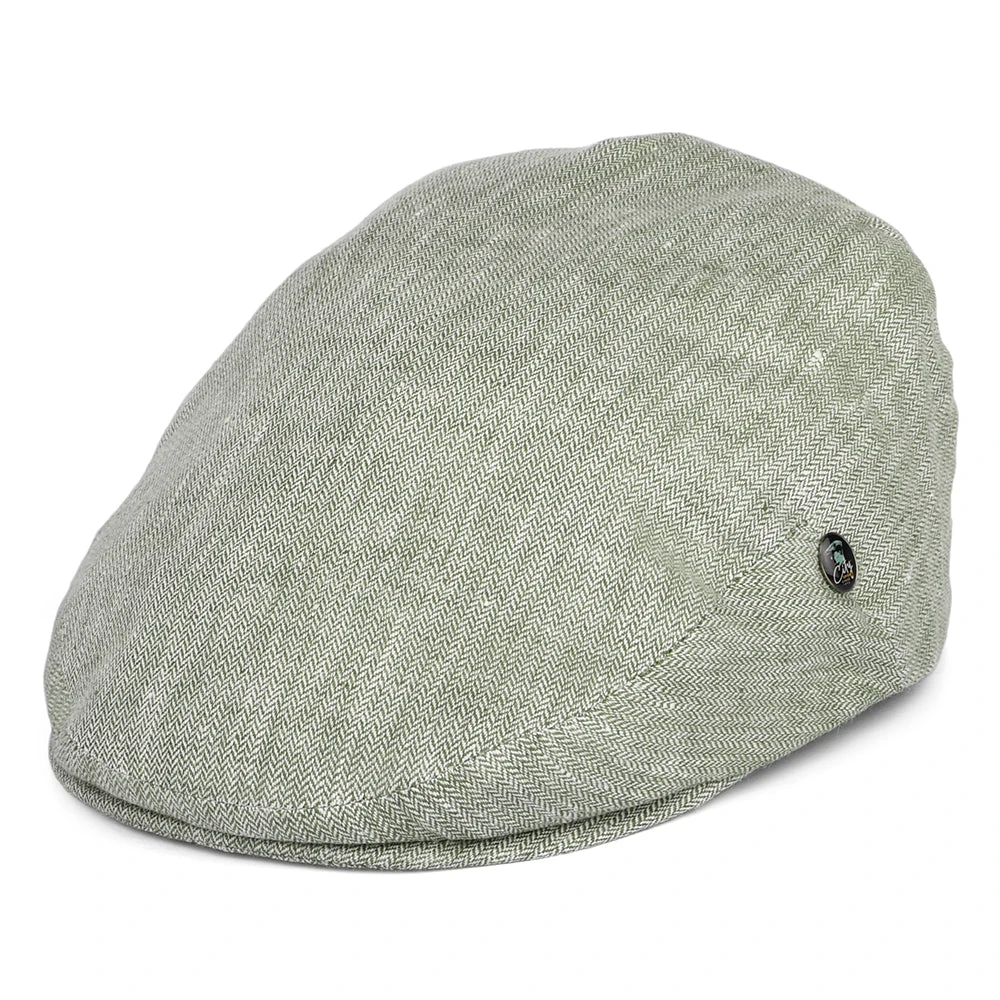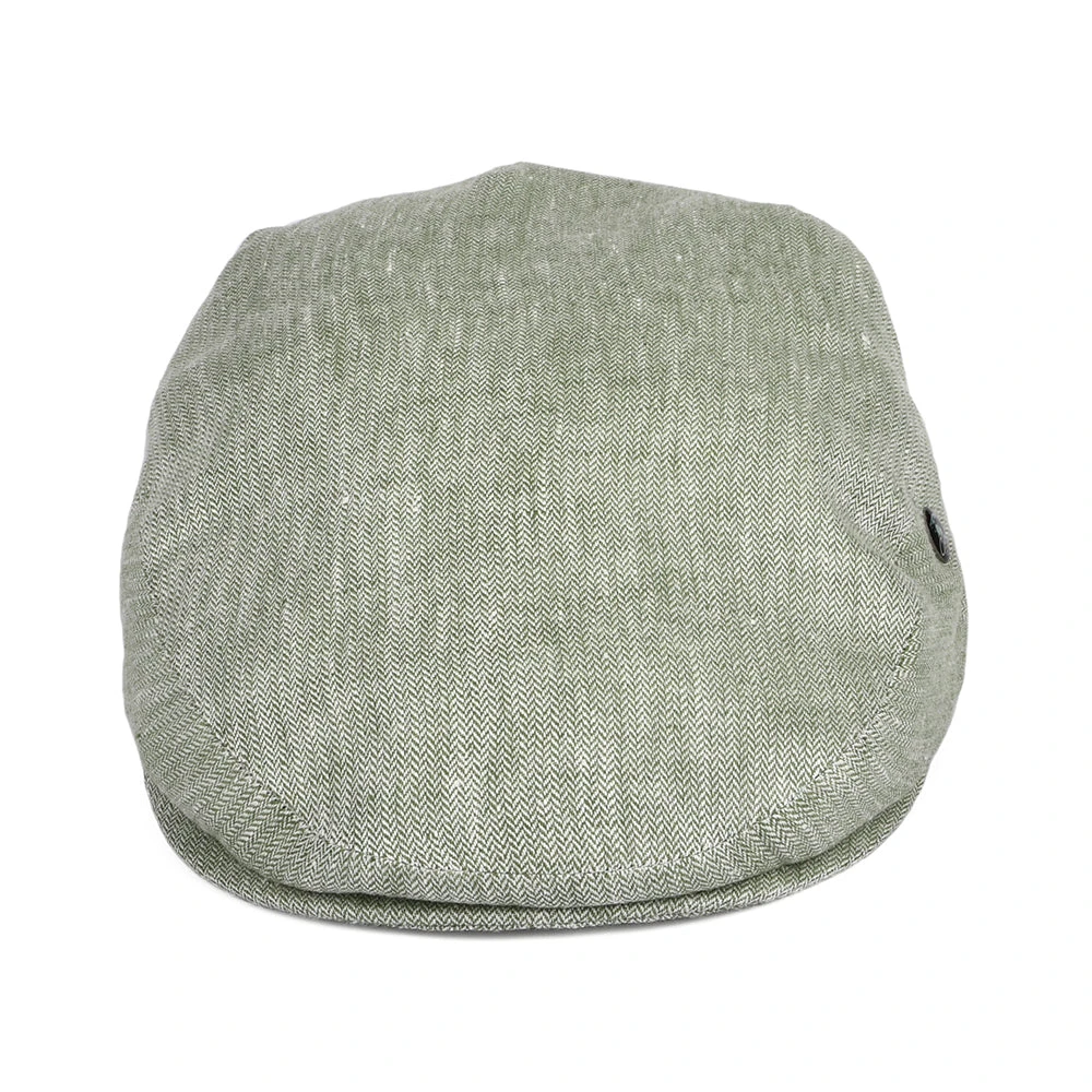 The City Sport Micro-Herringbone Linen Flat Cap in sage is made of 100% linen and features a subtle micro-herringbone pattern. Manufactured to the specifics stated in the bylaws of the Masters of Linen located in France, the 100% Linen Flat Cap has been certified European Linen of Quality. The cap is mesh lined for a comfortable fit and features a sewn down brim so it always look good. There is a City Sport pin attached on the side, and like all City Sport hats, the cap is made in Belgium.