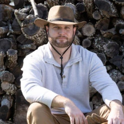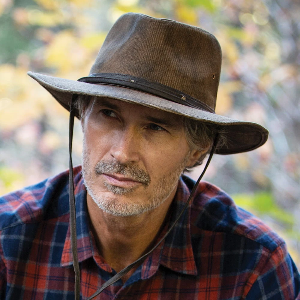 The Dorfman Pacific Hats Danum Distressed Twill Outback Hat in brown comes straight out of the box with that rough and tumble, ready to wear look. Like the name says, the distressed twill looks as if you’ve been riding the range for years getting that perfect beat up look to your hat. With a wire in the 8cm wide brim, you can instantly change the shape from an Outback hat to a Cowboy Hat. And the UPF 50+ rating also makes this the perfect sun hat. The hat comes with an adjustable chin cord and eyelets on the sides for breathability.