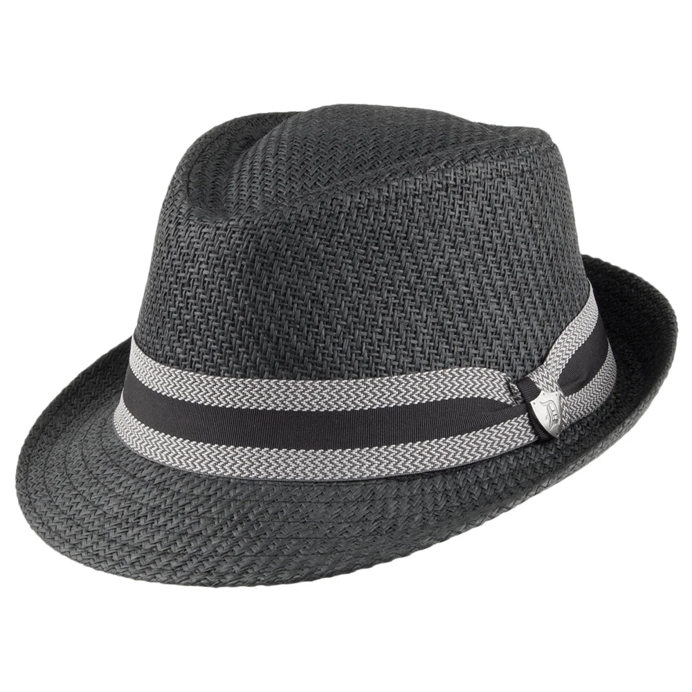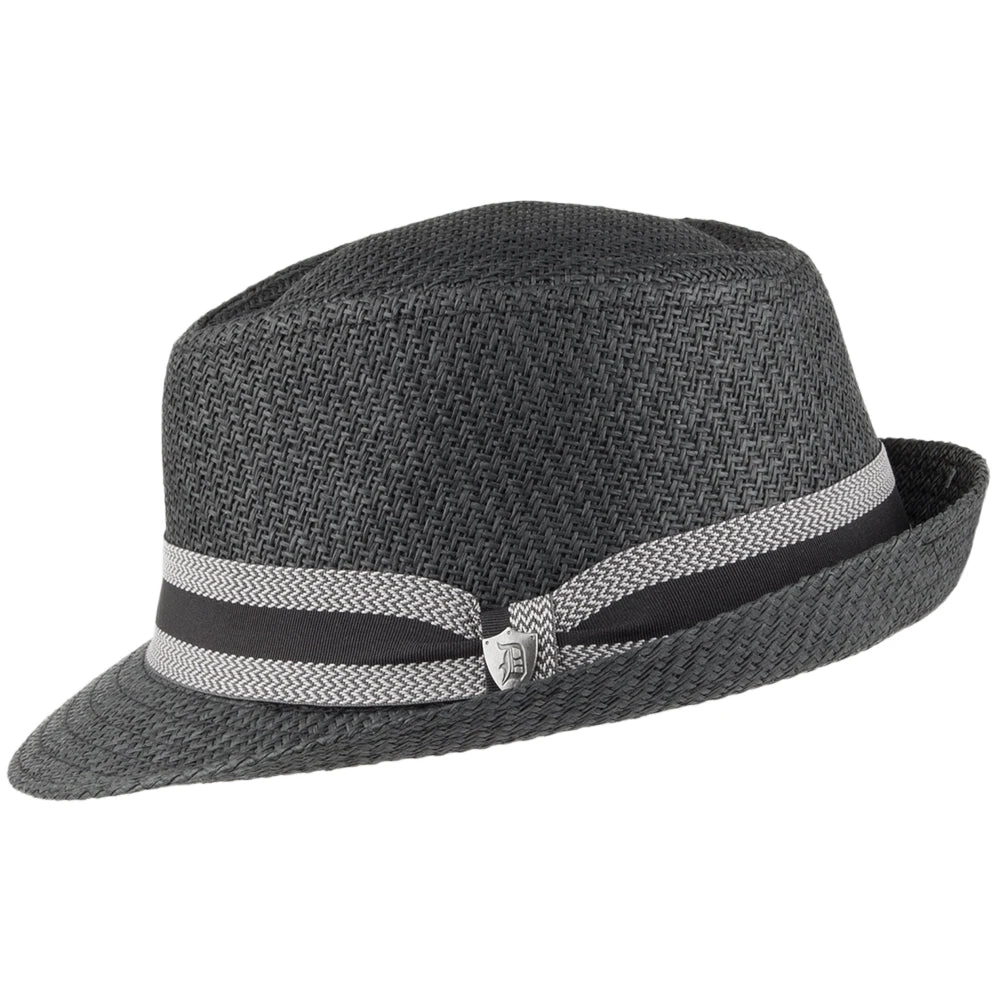 The Dorfman Pacific Matte Toyo Straw Trilby Hat with striped band in black is an eye-catching summer hat. The unique weave of the straw gives this hat a subtle difference that looks great and stands out from the crowd. A Dorfman Pacific hat pin is affixed to the side of the striped hat band. Lastly this trilby is fully lined with a thin fabric for comfort.