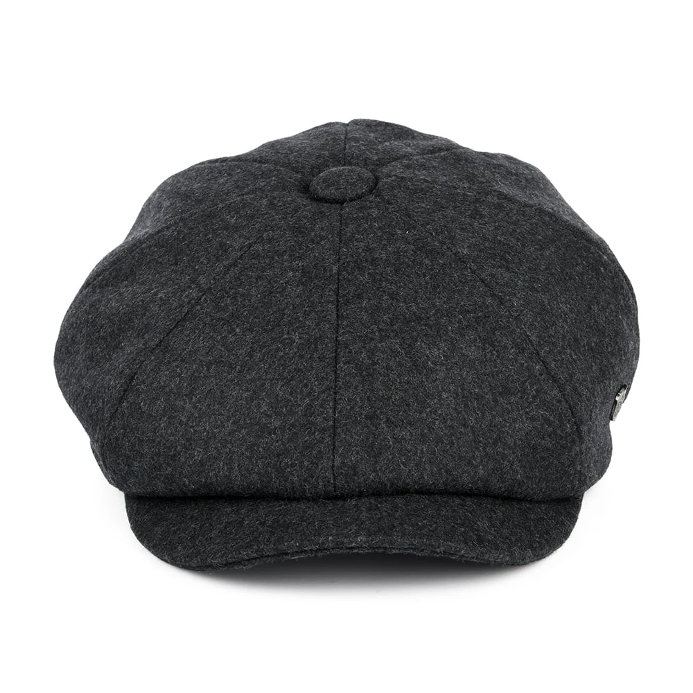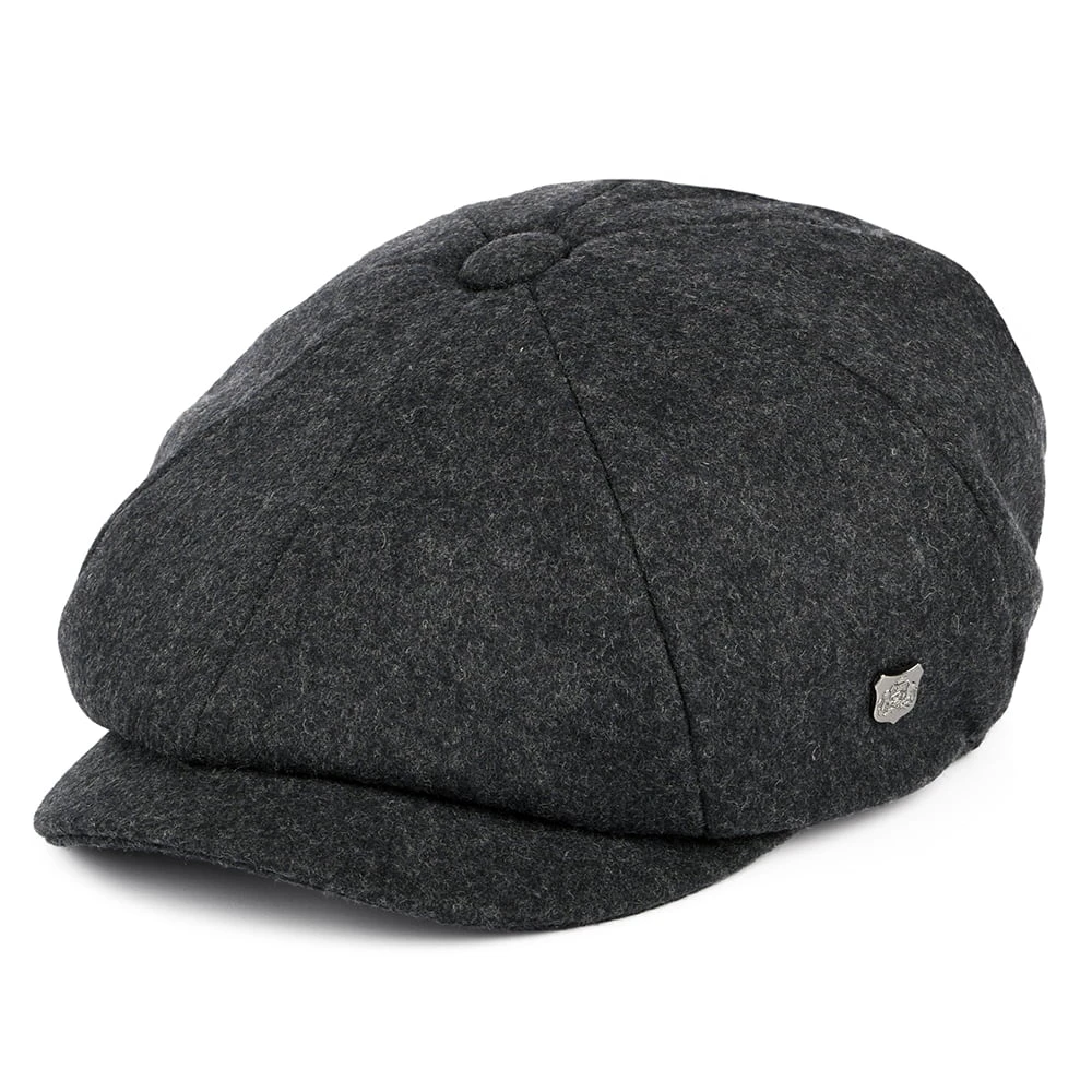 The Alfie Melton Wool Blend Newsboy from Failsworth in grey is a classically styled, full 8/4 newsboy shape. The cap has a sewn down brim and a removable Failsworth side pin. A blend of 50% wool and 50% polyester with a quilted satin lining, this cap is sure to keep you warm on a cold British day.