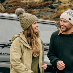 The Amelia Faux Fur Pom Bobble Hat in sage is a wonderful new style from Failsworth. This fabulous winter hat features a faux fur pom on top of a soft chunky crown. A small Failsworth pin is attached to the cuff. Stay warm and look great this winter with a new hat.