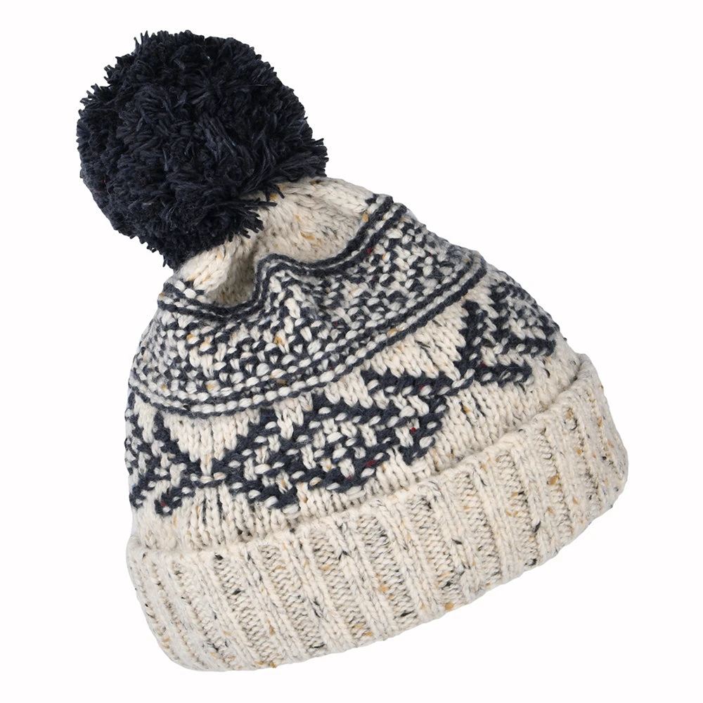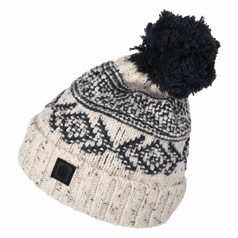 Failsworth have made a fantastic winter style with this Fair Isle Bobble Hat in a oatmeal-navy colour. The hat features a Failsworth patch sewn to the cuff of the hat and a Fair Isle pattern on the crown. There is a large bobble at the top to finish of this great winter hat.