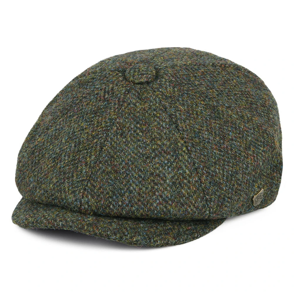 The Failsworth Carloway Herringbone Newsboy Cap in forest is made from Harris Tweed – World renowned for warmth, comfort and durability.