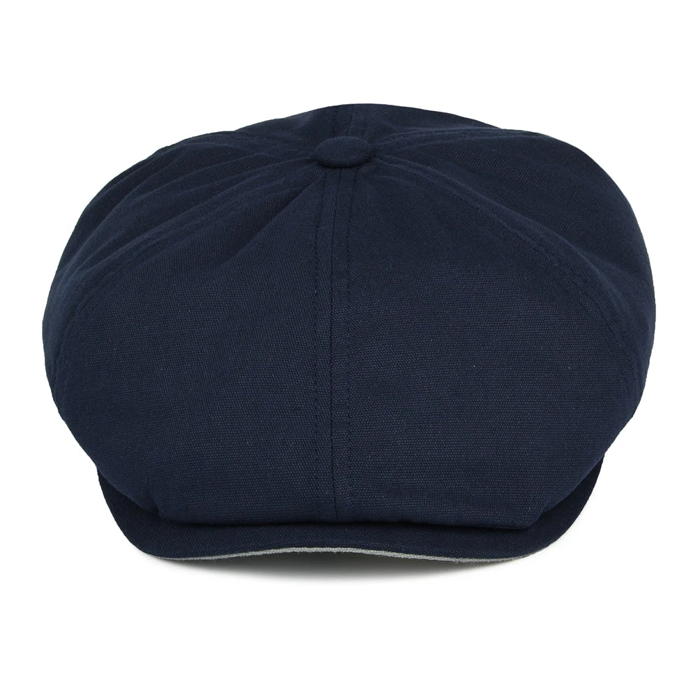 The Hudson newsboy cap from Failsworth in navy-mint is made of a soft feel cotton canvas. Unlined, the cap comes with a cotton sweatband for additional comfort. A Failsworth leather tab is featured at the back and there is a contrasting underbrim. Don’t miss out on this great new style!