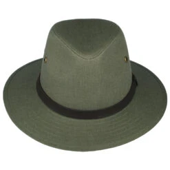 The Failsworth Hats Irish Linen Safari Fedora Hat in khaki is a lovely linen design, a dependable, sturdy hat. Perfect for the warmer months, whether you are going abroad, or staying local, this is the hat for you! Made from 100% Irish linen, featuring a faux leather band framing the hat, and eyelets on either side for maximum ventilation. Versatile, this hat is both showerproof and UPF 40+.