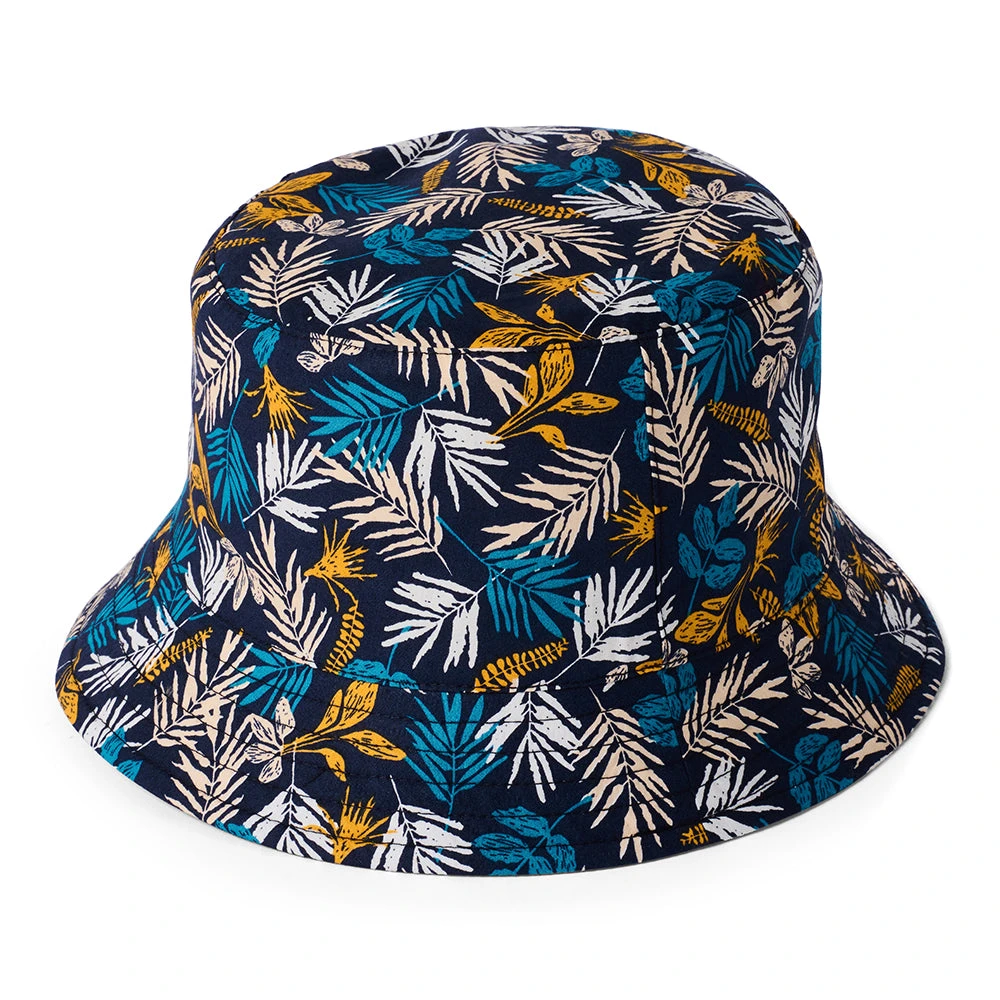The Failsworth Hats Reversible Cotton Bucket Hat in dark navy is reversible so it has two very unique looks. One side features a tropical print and the other side is a solid dark navy colour. You can roll this hat up for easy packing.