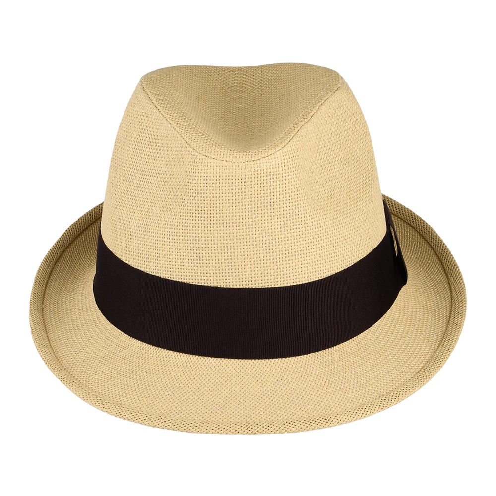 The Toyo Straw Trilby Hat in tan from Failsworth is the perfect summer hat. The brim of this trilby is folded down at the front and curled up at the back. The hat is decorated with a grosgrain hat band. The inside is lined with cotton and also features a cotton sweatband. A great trilby hat for sunny days thanks to its UPF 40+ sun protection rating!
