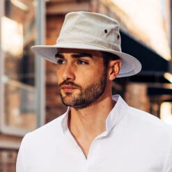 The Traveller Crushable Sun Hat in stone from Failsworth Hats is your perfect outdoors hat. Made of 100% cotton, it will keep your head ventilated with its 4 eyelets. For a maximum comfort the hat has a sweatband. Versatile, this hat is both showerproof and UPF 40+.