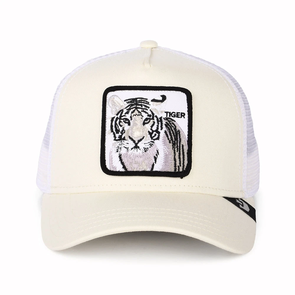 Proudly display your spirit animal with the Goorin Bros. White Tiger Trucker Cap in white. This baseball cap features a mesh back and and an adjustable snapback for easy sizing. An embroidered Goorin label is sewn to the side of the brim and a unique patch is sewn on the structured front panel.