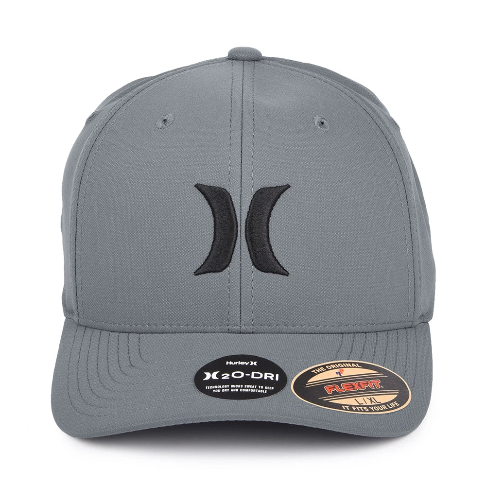 The Hurley H2O-Dri One & Only Flexfit Baseball Cap in dark grey features the Hurley H2O-Dri technology which helps wick away sweat so your head stays dry. The Hurley logo is embroidered on the front and back. There is a Flexfit sweatband so you can get a great fit.