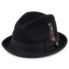 The Indiana Jones™ Weathered Cotton Safari Fedora is a great rugged looking hat. The weathered cotton blend has the look and durability of leather but lightweight. The 4″ high crown has a 1″ wide self band with the official Indiana Jones™ pin. The wired stitched brim is 2 1/2″ wide in the front and back and 2 1/4″ wide on each side.