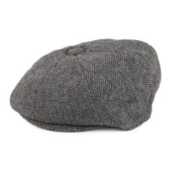 This is the Jaxon & James Baby Herringbone Newsboy Cap in charcoal grey. This fantastic little newsboy style has been designed specifically for babies. It is made of a wool blend and has a sewn down brim, grosgrain sweatband, satin lining and an elastic band at the back so it will stretch to fit.