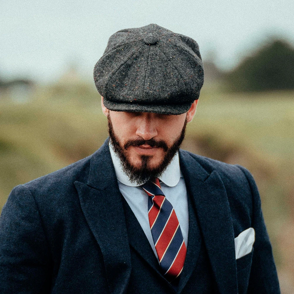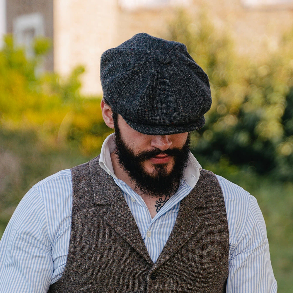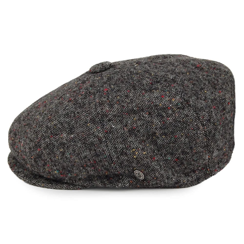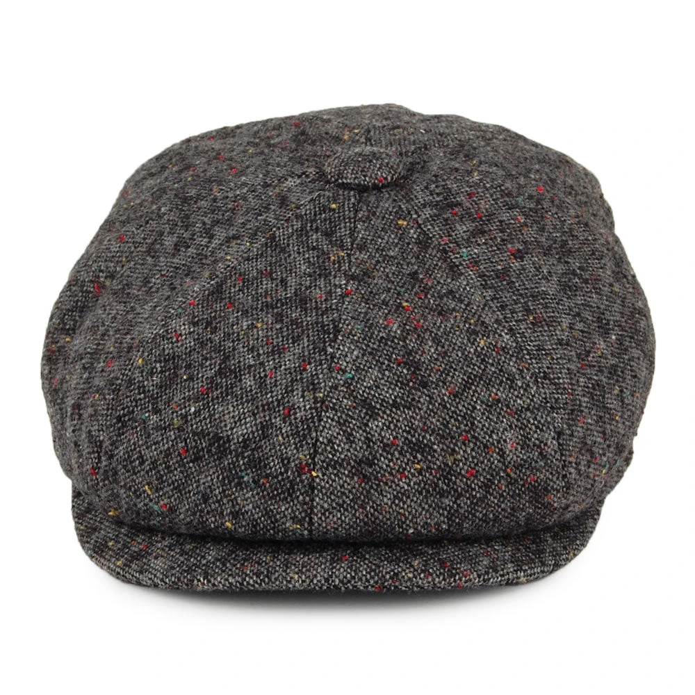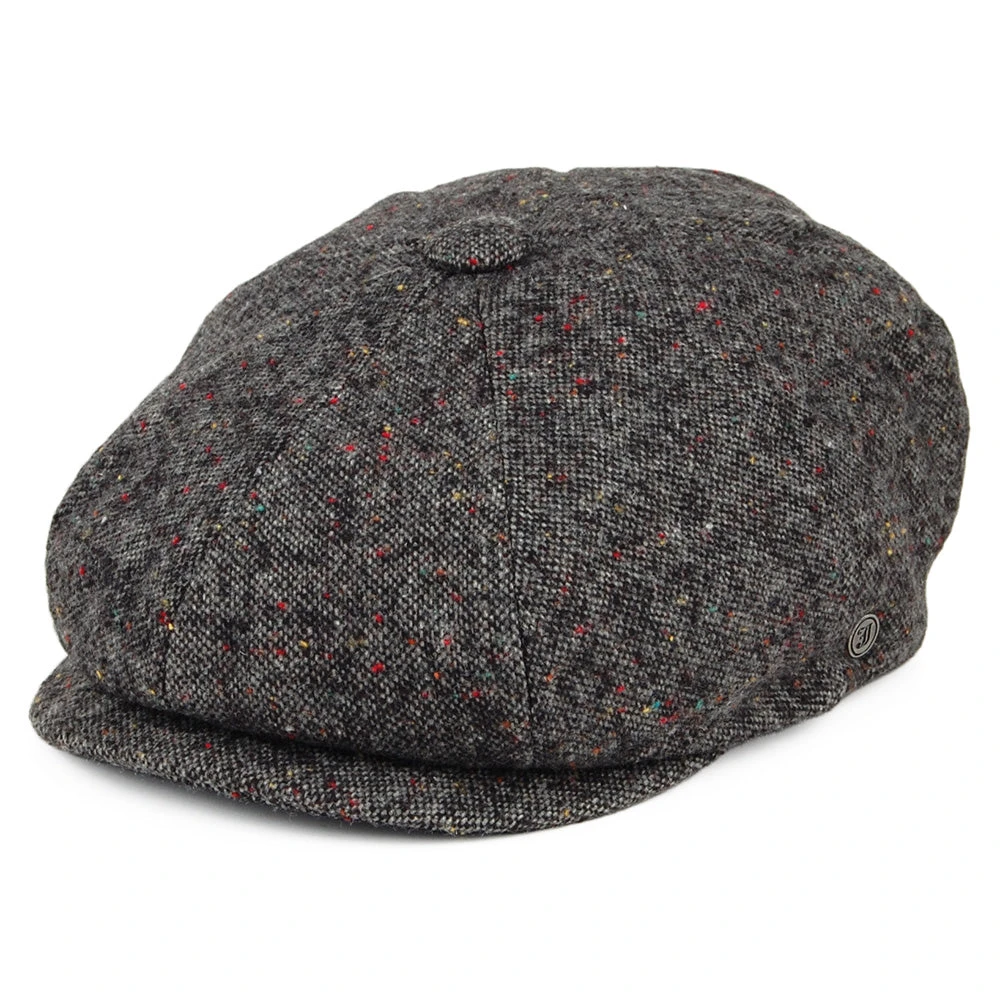 This is the Blackheath Speckled Marl Newsboy Cap in black multi from Jaxon & James. This beautiful and soft cap in classic style comes with a quilted satin lining and a grosgrain sweatband for great comfort. The cap has a sewn down brim and a removable Jaxon & James pin on the side.
