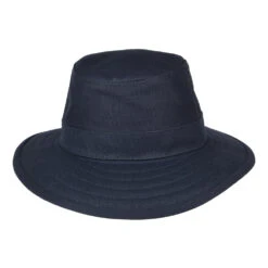 This is the Jaxon & James Cotton Canvas Packable Sun Hat in navy blue. This lightweight hat is made of 100% cotton and can be folded up for easy travelling. The brim measures 8.5 cm on the front and back and 6 cm on the side offering great protection from the sun. The inside has a cotton sweatband for extra comfort.