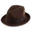 This grey Jaxon & James Crushable C-Crown Wool Felt Fedora is both dressy and practical. The back part of the crease at the top of the crown forms a big letter “C”, therefore C-crown style fedora. This hat is crushable and water resistant. The hat has a snap brim, which means it can be worn up or down. You won’t be able to find a classic look anywhere else.