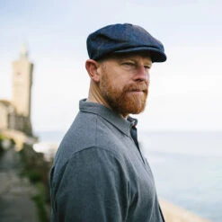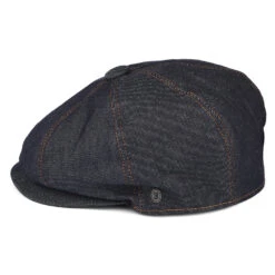 Here is the Jaxon & James Denim Newsboy Cap in a dark blue denim colour. This 100% cotton flat cap comes with a double snap brim to maintain shape, a grosgrain sweatband, satin lining and removable Jaxon & James side pin.