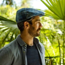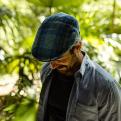 This is the Harris Tweed Bay River Flat Cap from Jaxon & James in blue-navy. This great new genuine Harris Tweed style is made of 100% pure new wool, that has been dyed, spun and handwoven in the Outer Hebrides of Scotland. For extra comfort this hat has a quilted satin lining and a grosgrain sweatband. On the side is the Jaxon & James pin attached. The crown is sewn down to the visor. The Bay River is an outstanding flat cap by the brand Jaxon & James!