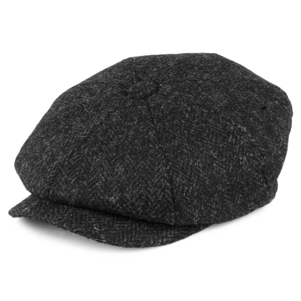 The Jaxon & James Harris Tweed Taransay Newsboy Cap in black-charcoal is a simple and stylish design by the legendary hat makers.