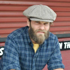 The large profile eight-quarter cap in brown is classic New York City streetwear. The Big Apple is about 12 inches in diameter. Newsboys hawked papers (‘Read all abo’t it’) in this cap that drips with depression era resonance. This cap is popular with both men and women.